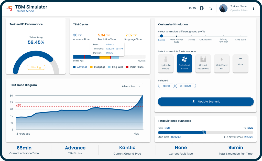 An advanced training platform that replicates real tunnelling conditions, enabling operators to practice safely and gain hands-on experience before going on site