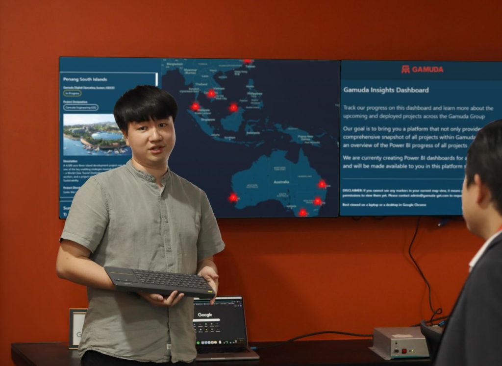 Software engineer Lee Kai Wen demonstrating the use of Google Cloud’s GenAI platform to promote agile and data-driven decision-making. Lee sees digital construction as the future, with GenAI boosting efficiency and, driving local and global growth.