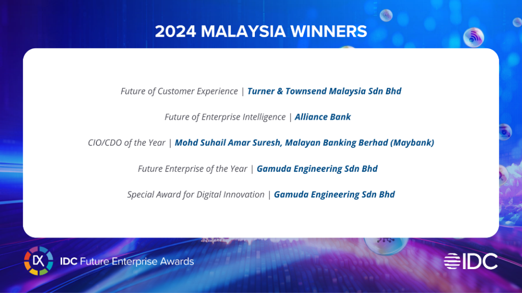 “The 2024 Future Enterprise Awards winners from Malaysia showcase how organizations are harnessing cutting-edge technologies to drive operational efficiency, customer satisfaction, and innovation. Turner & Townsend’s digital transformation in customer experience and Alliance Bank’s enhanced risk management system are prime examples of leveraging technology to deliver impactful results,” says Melvie Espejo, Research Director, IDC Asia/Pacific